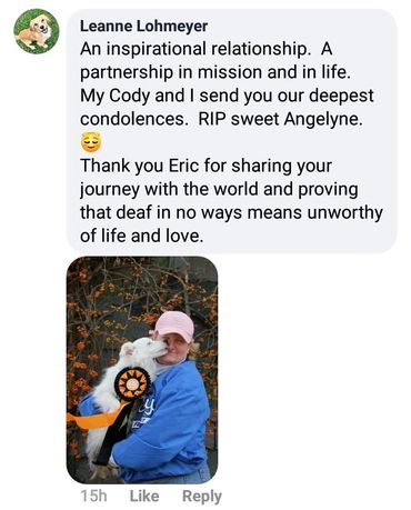 Eric Melvin and Maddie donate a significant amount of time advocating for deaf dogs. The important mission began in 2005 with Angelyne and continues today.